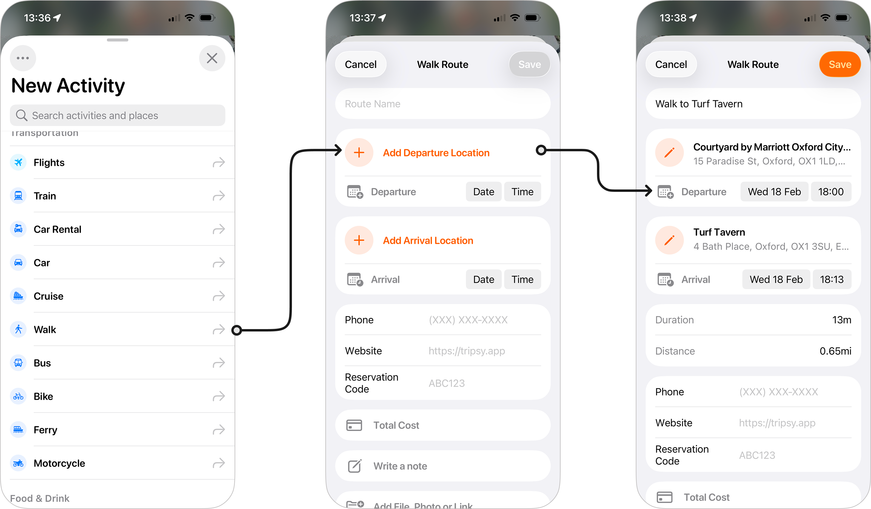 Whilst tripsy isn't a dedicated route planning app, we've made it easy to be able to have timings for your journeys within your itinerary as well as ticket information where applicable.